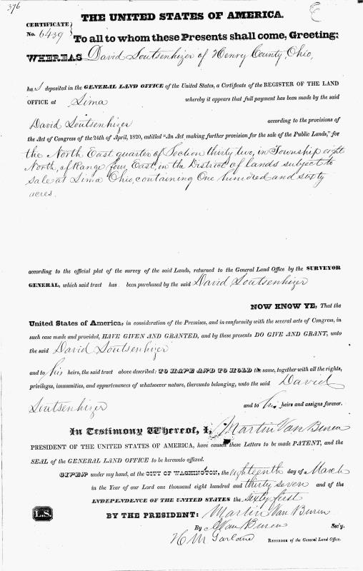 1837 Ohio Land Purchase