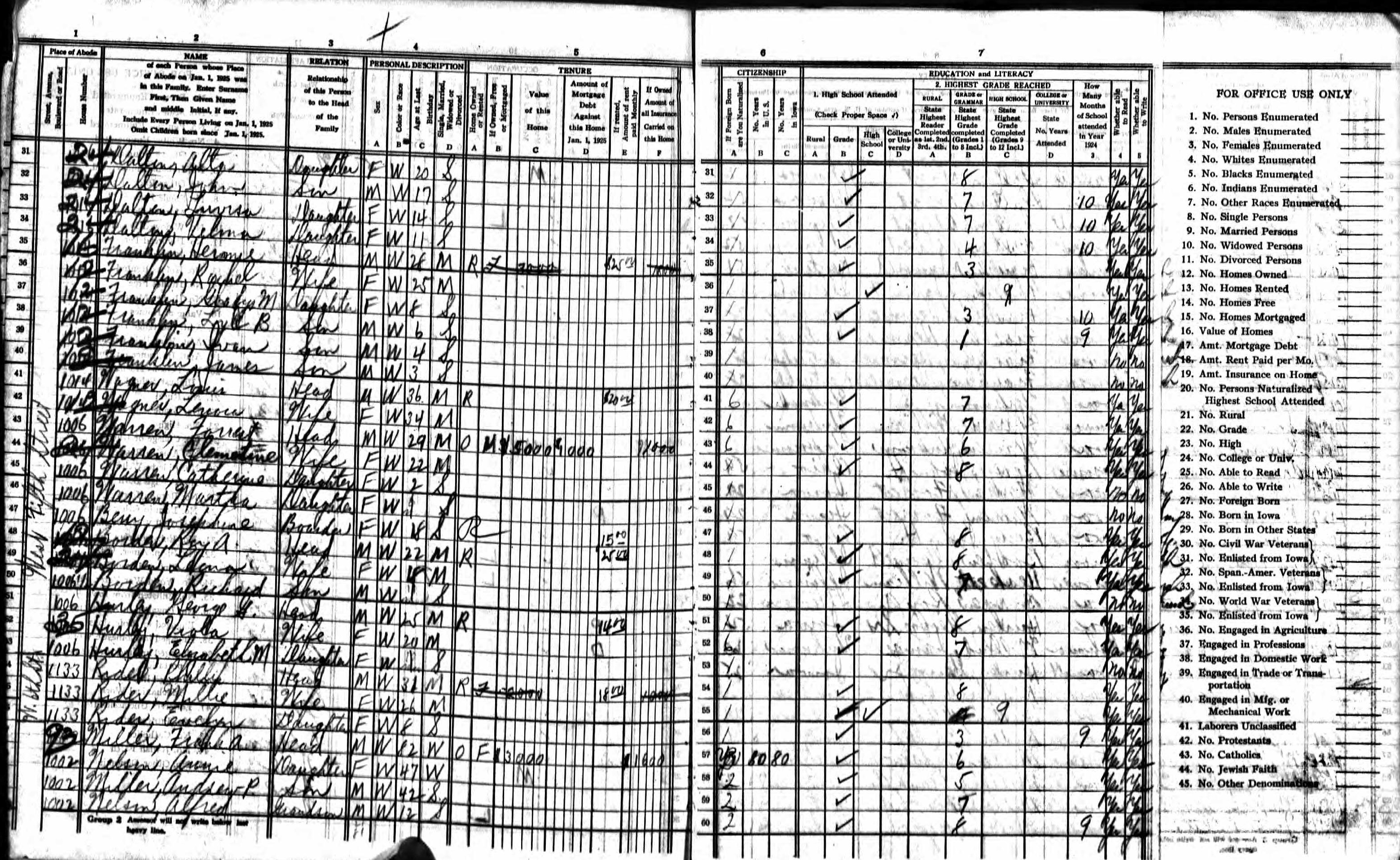 Ovens Family 1940 Federal Census Iowa, Lines 35-36