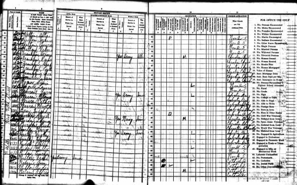 Ovens Family 1920 Federal Census Iowa, Lines 96-99