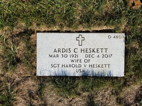 Harold V. Heskett were married on June 21, 1946 in Davenport, Scott, Iowa, USA. She died on December 4, 2017, at age 96, in Davenport, Scott, Iowa, USA. She was buried in Rock Island National Cemetery, Rock Island, Illinois.