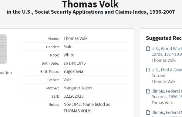 Thomas Volk was born on December 16, 1875 in Catez, Krain, Austria. He and
