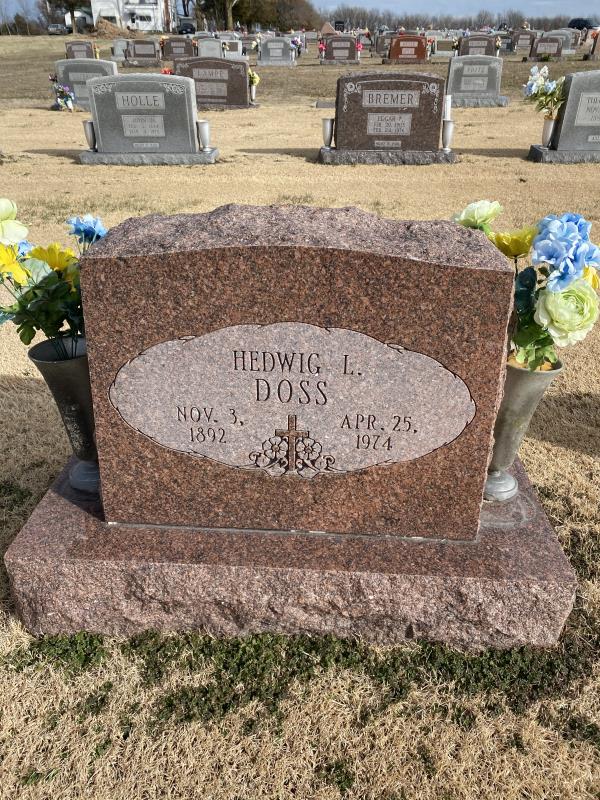 Johann Ferdinand Doss were married in 1920. She died on April 25, 1974, at age 81, in Mount Vernon, Lawrence, Missouri, USA. She was buried in Trinity Lutheran Church Cemetery, Freistatt, Missouri.