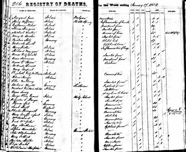 Eliza A. Steinmann were married. He died on January 17, 1853, at age ~30, in St. Louis, Missouri, USA. He was buried in Holy Ghost Cemetery, St. Louis, Missouri.