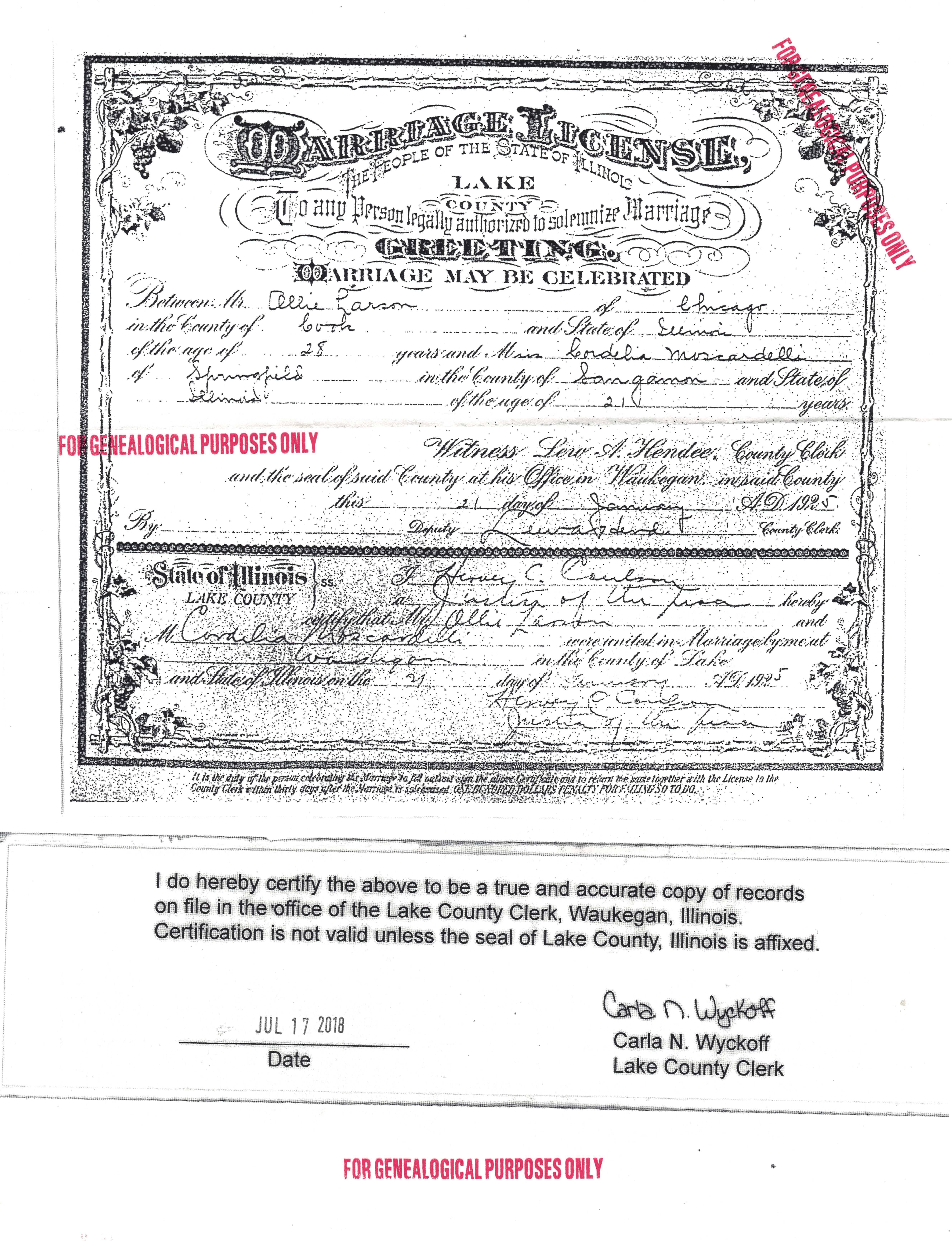 1925 Marriage Record