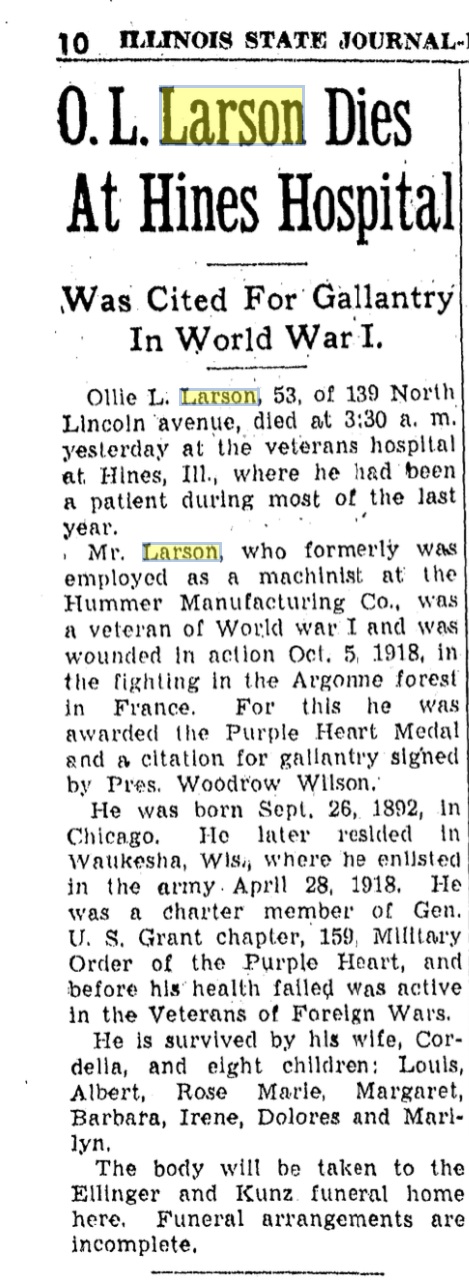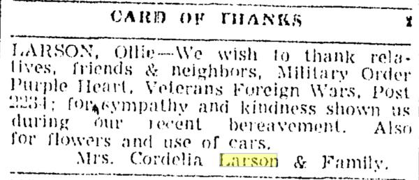 Son | Louis Cassmir "Ollie Jr." Larson Born: March 30, 1926, Died: March 11, 1958 |