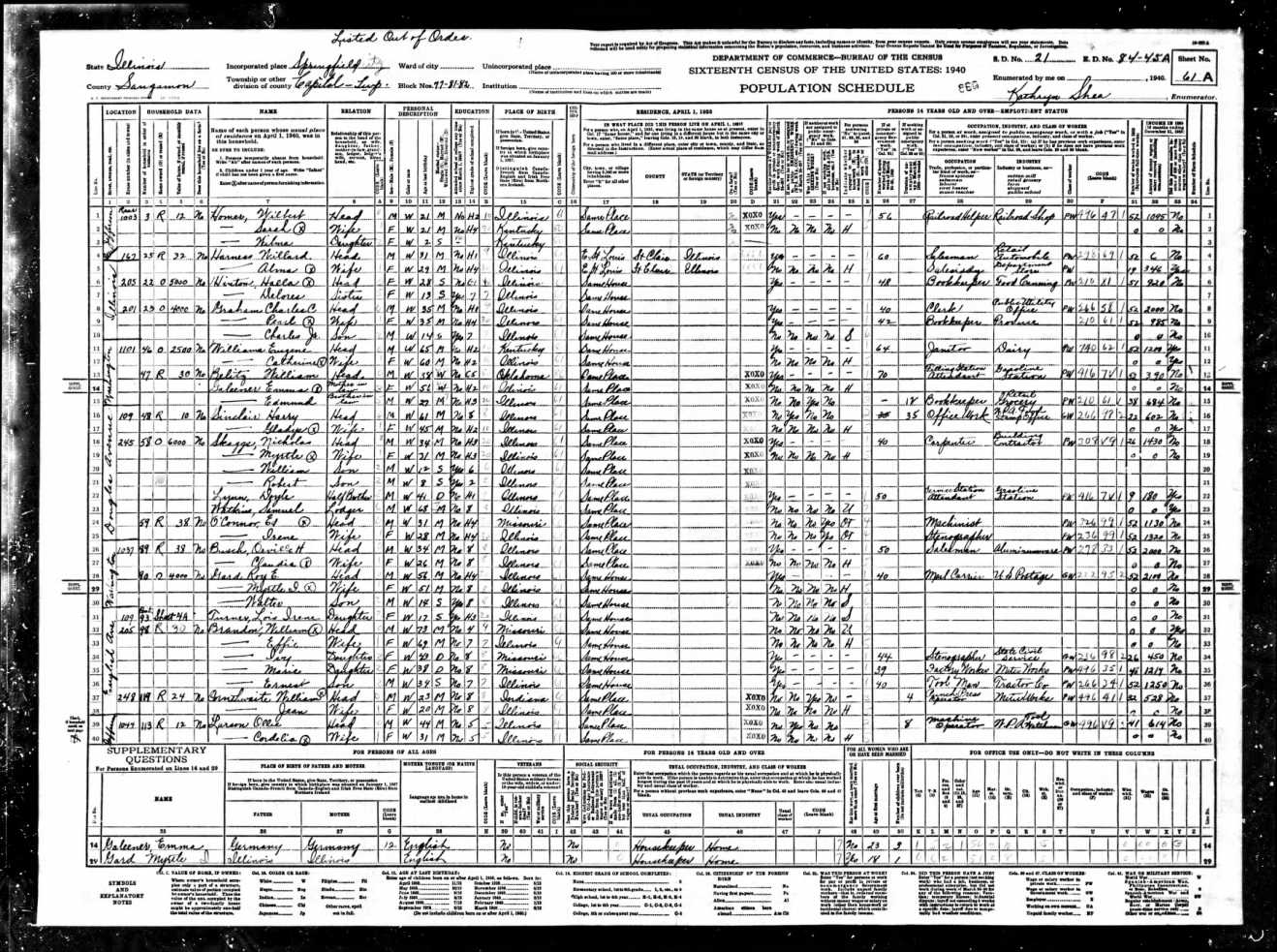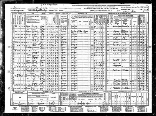 Larson Family 1940 Federal Census Illinois, Lines 39-40