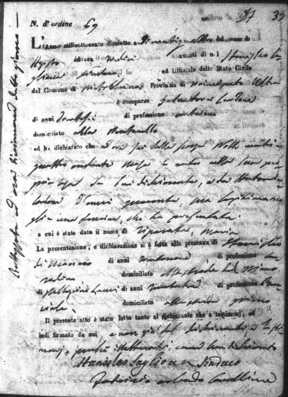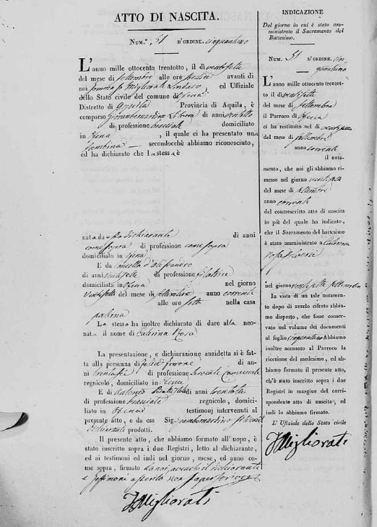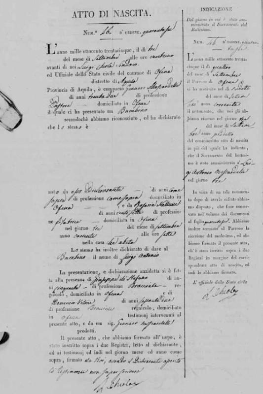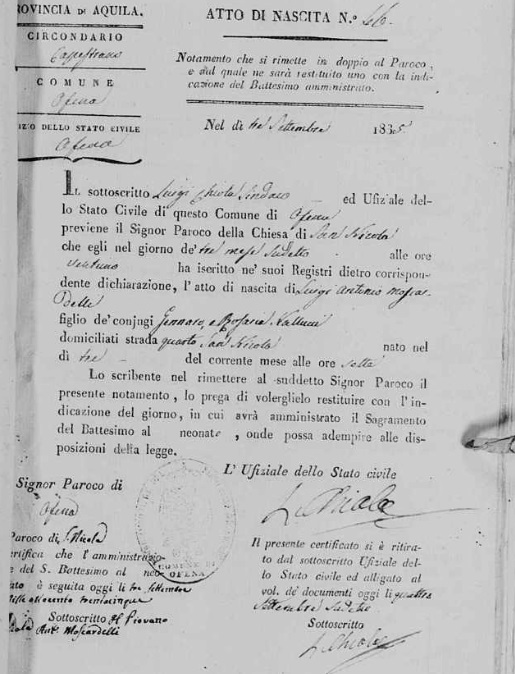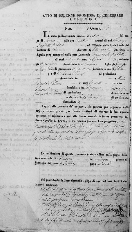 Maria Rosaria Nallucci were married on March 4, 1826 in Solmona, L'Aquila, Abruzzo, Italy. He and
