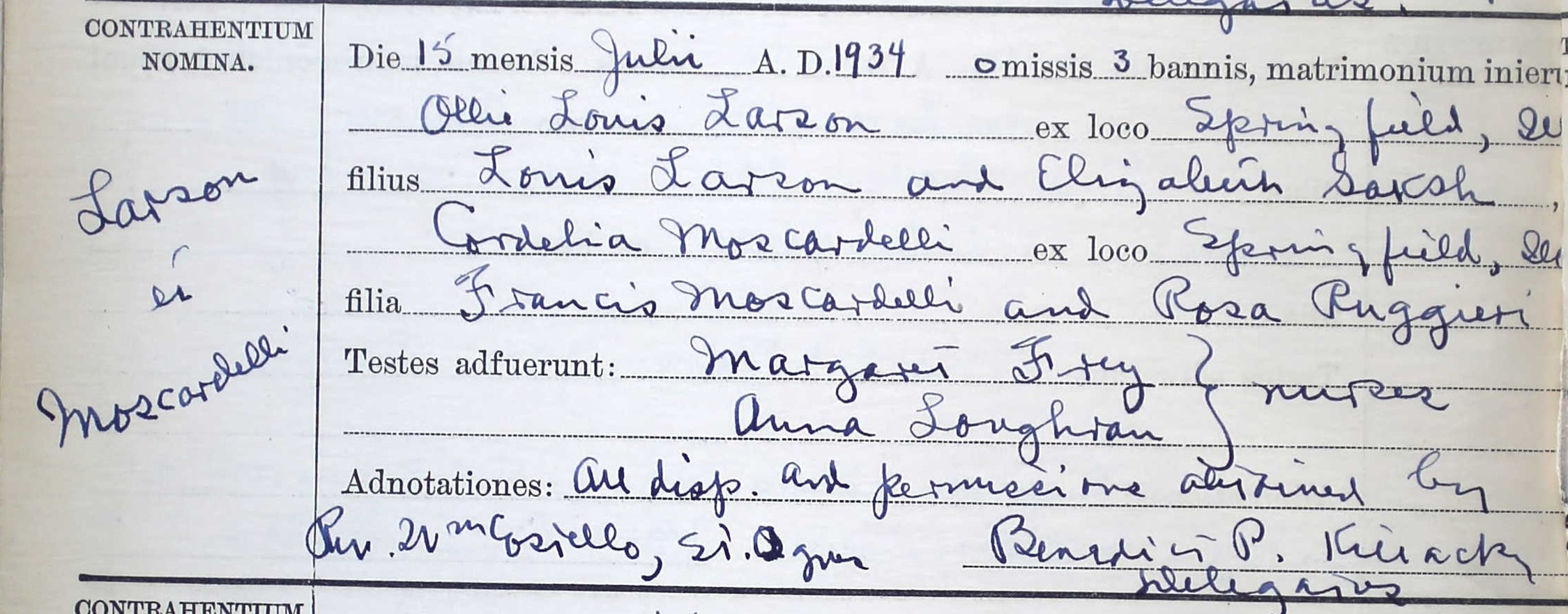 1934 Marriage Record (Church)