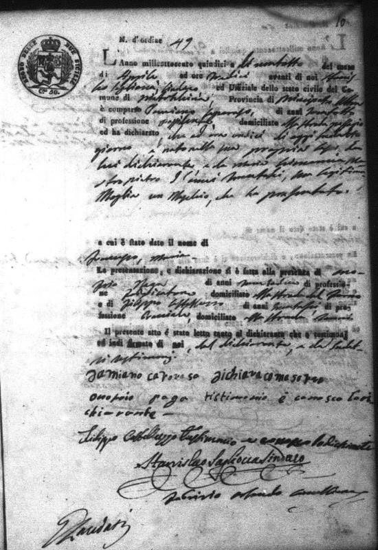 Giovanna Costanza Maria Mastropietro were married on April 30, 1828 in Pietrelcina, Benevento, Campania, Italy. He died.