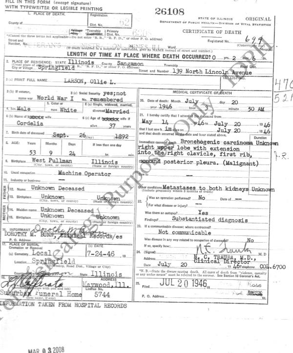 1946 Death Certificate