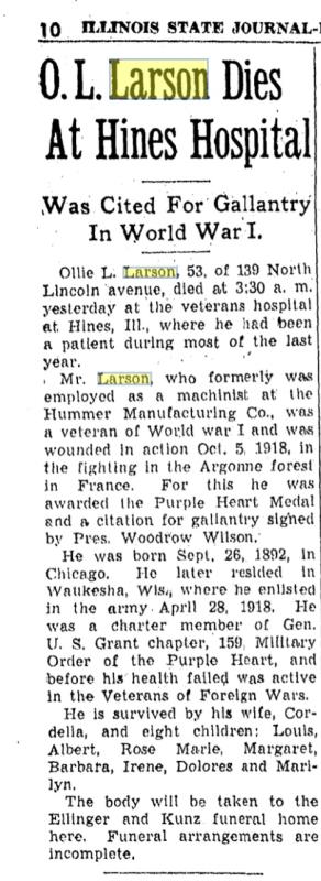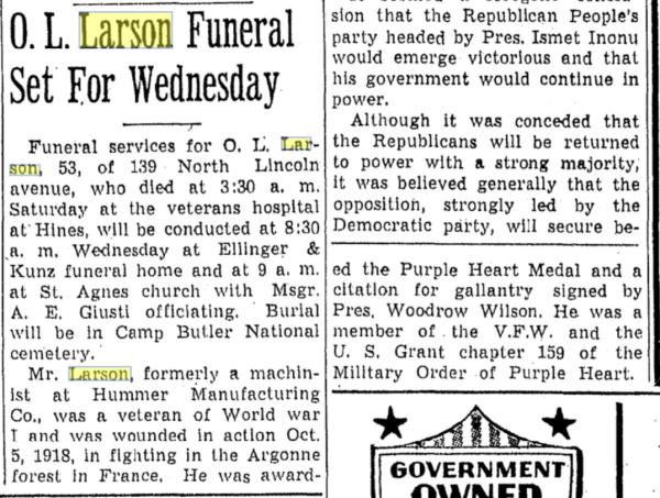 Lajos "Oliver Louis" " Ollie" Szakacs "Larson" was also known as Oliver Louis "Ollie" Larson.