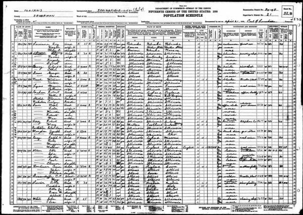 Larson Family 1930 Federal Census Illinois, Lines 94-98