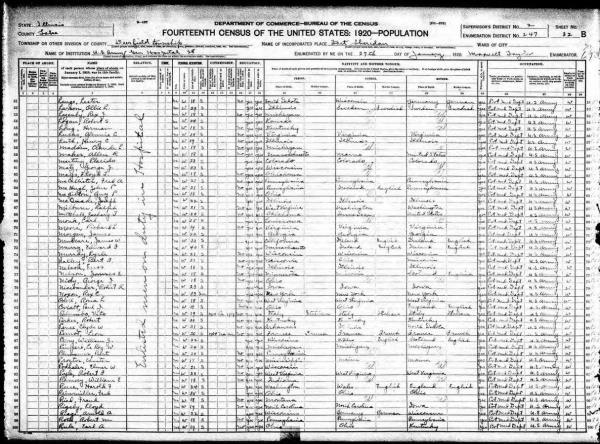 Ollie Larson 1920 Federal Census Illinois, Line 52