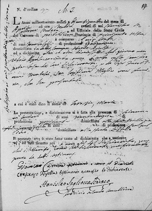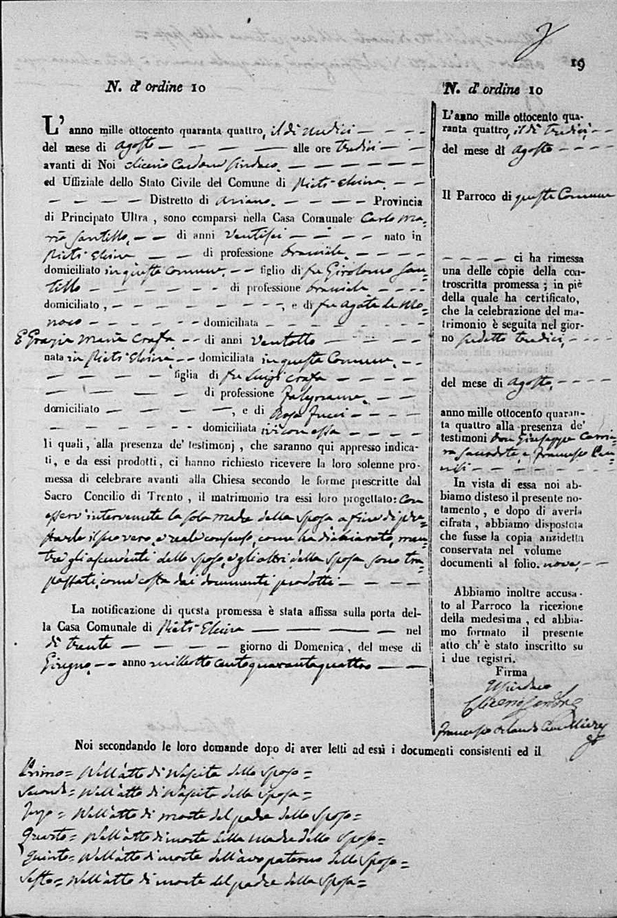 Gennaro Maria Di Cianni were married on May 30, 1842 in Pietrelcina, Benevento, Campania, Italy. She and