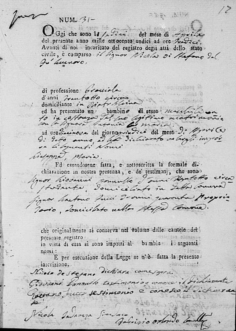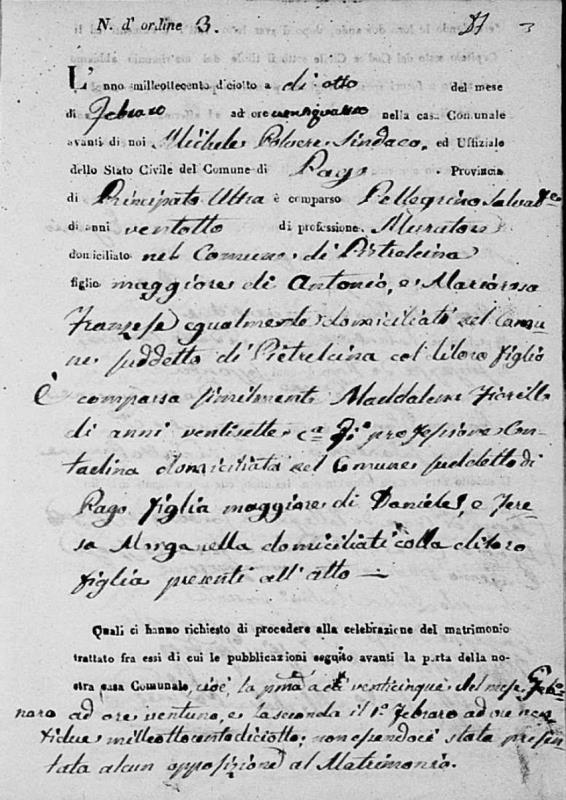 Maddalena Fiorillo were married on February 8, 1818 in Pago Veiano, Benevento, Campania, Italy. He died.
