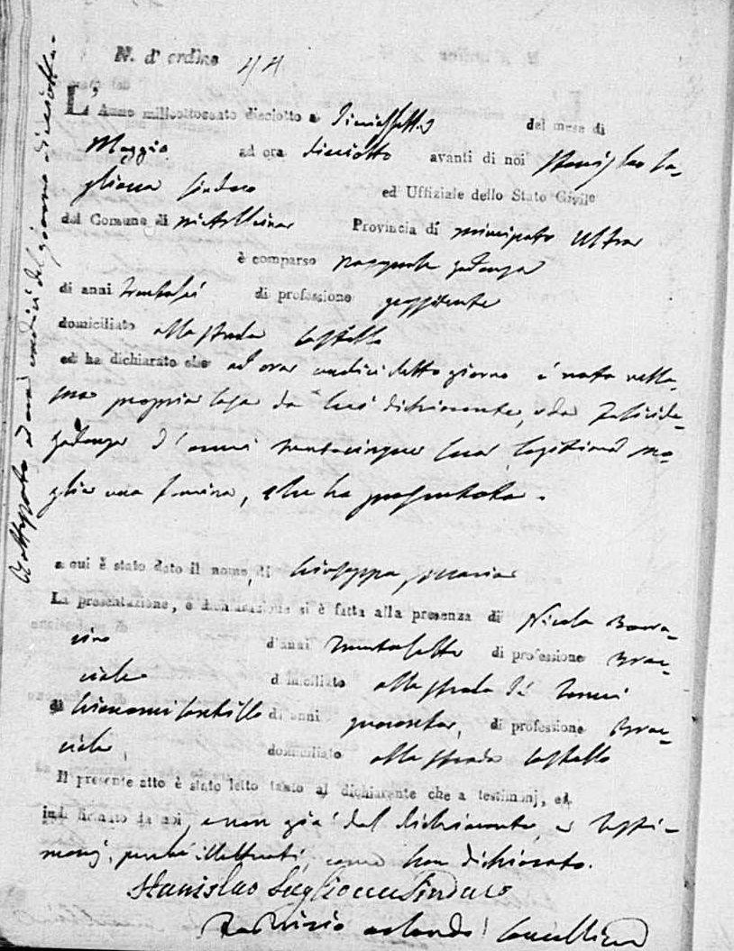 Pellegrino Salvatore was born in 1790 in Italy. He and