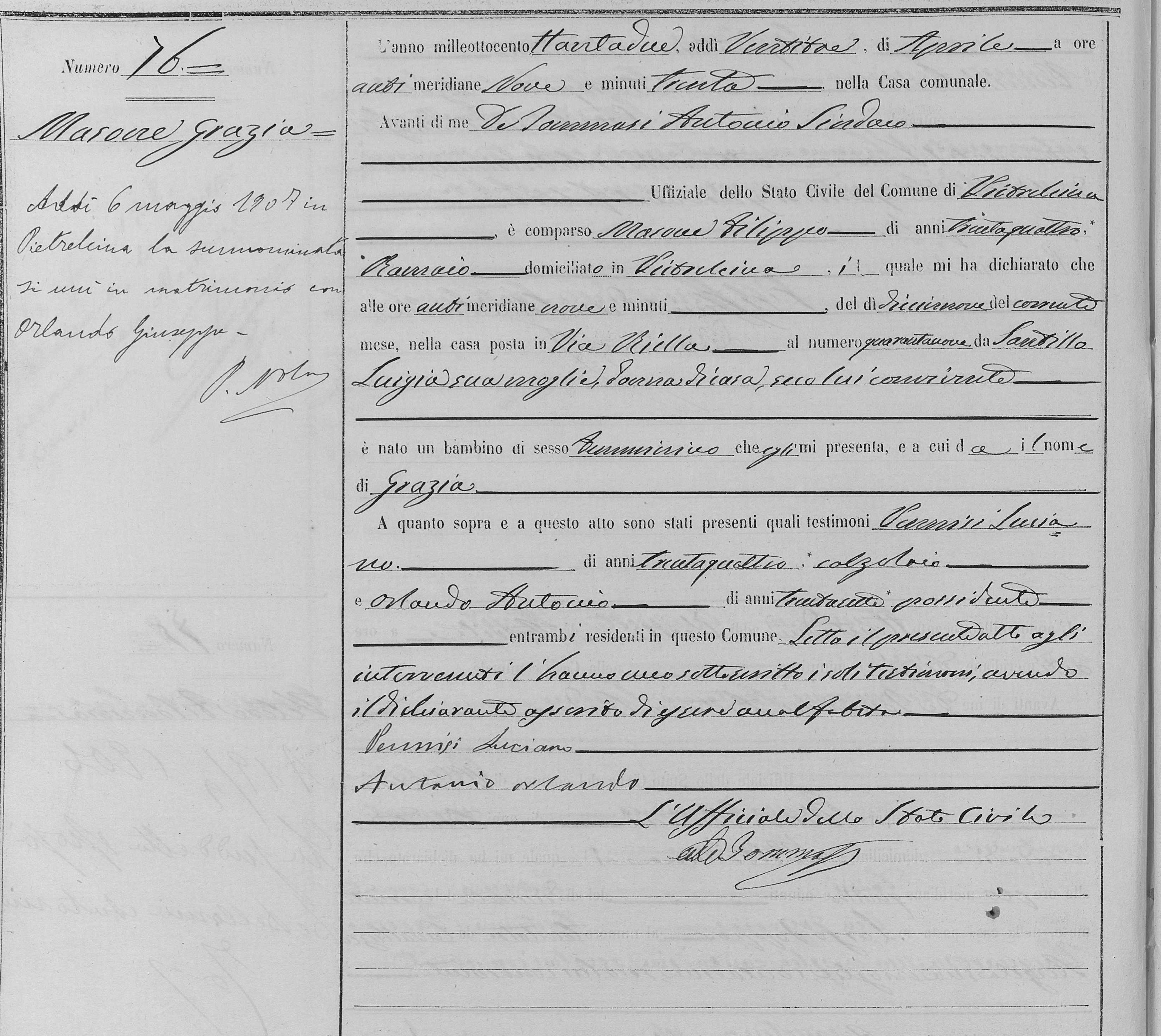 Giuseppe Orlando were married on May 6, 1907 in Pietrelcina, Benevento, Campania, Italy. She died.