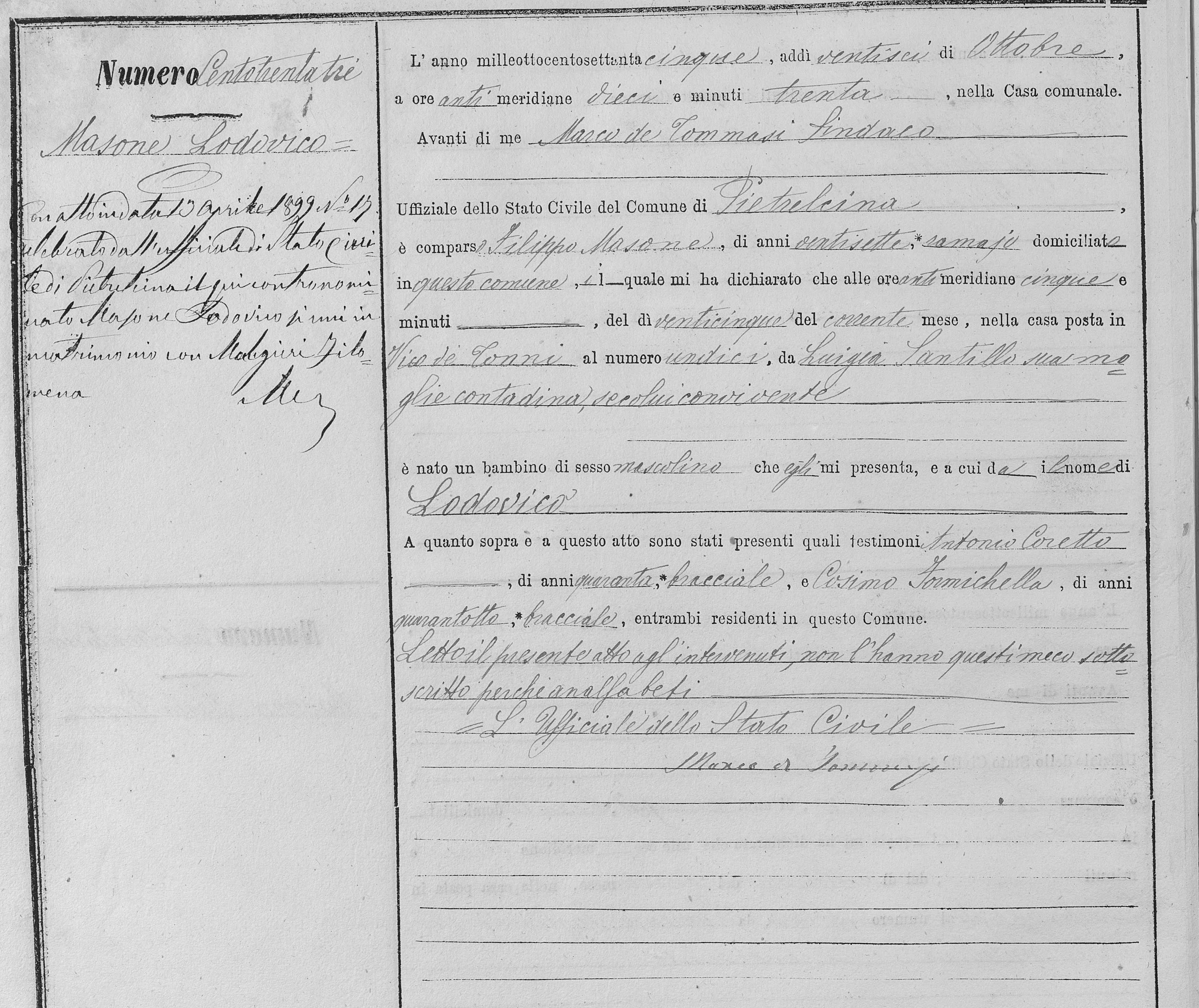 Lodovico Masone was born on October 26, 1875 in Pietrelcina, Benevento, Campania, Italy. He and