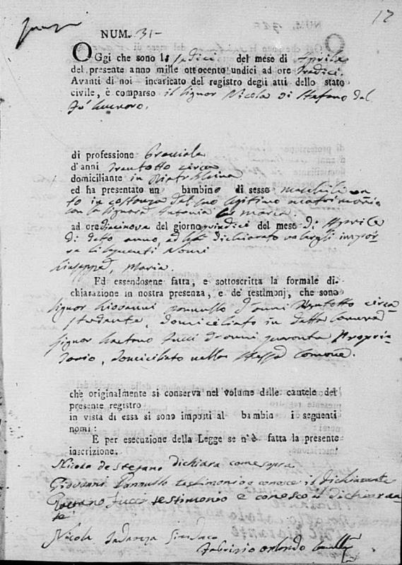 Son | Giovanni Maria Iadanza Born: September 21, 1812 |