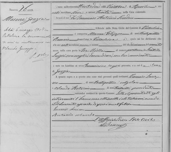 Grazia Maria De Stefano were married on September 27, 1883 in Pietrelcina, Benevento, Campania, Italy. He died.