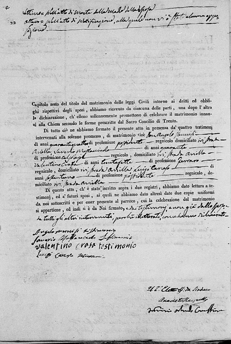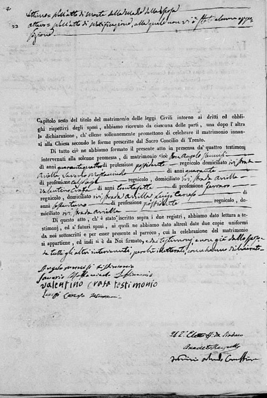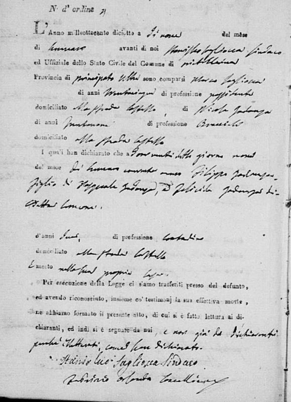 Orsola Paladino were married. He died on April 20, 1856, at age ~80, in Pietrelcina, Benevento, Campania, Italy.
