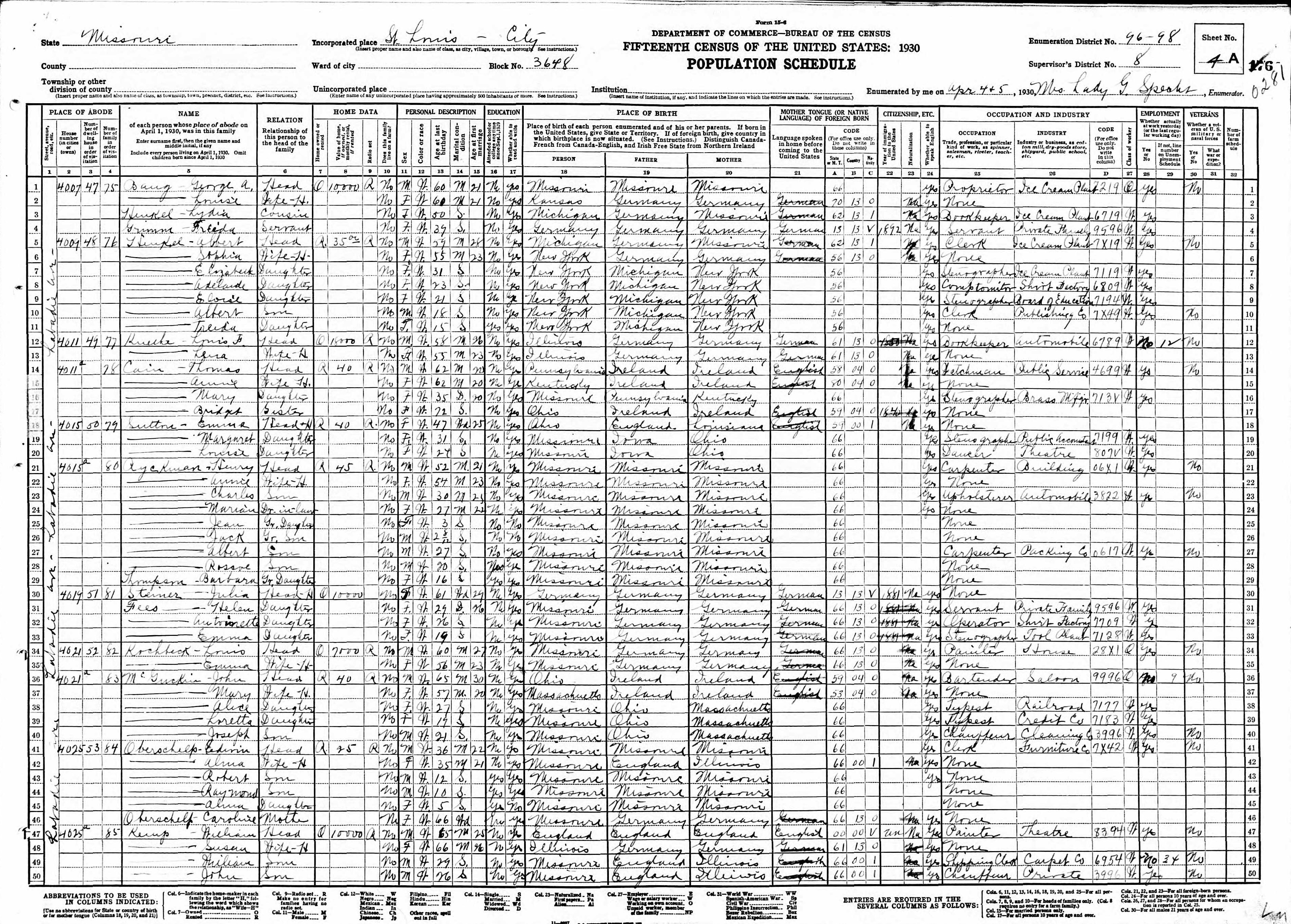 Kuethe Family 1930 Federal Census Missouri, Lines 12-13
