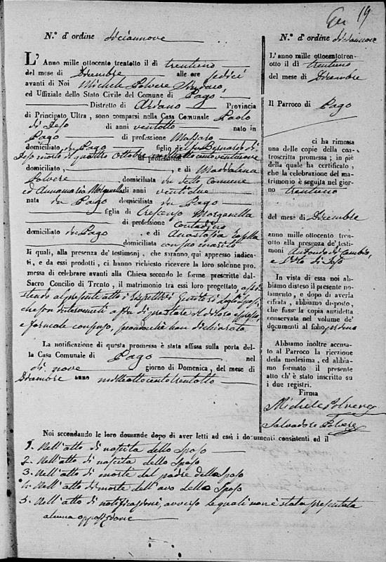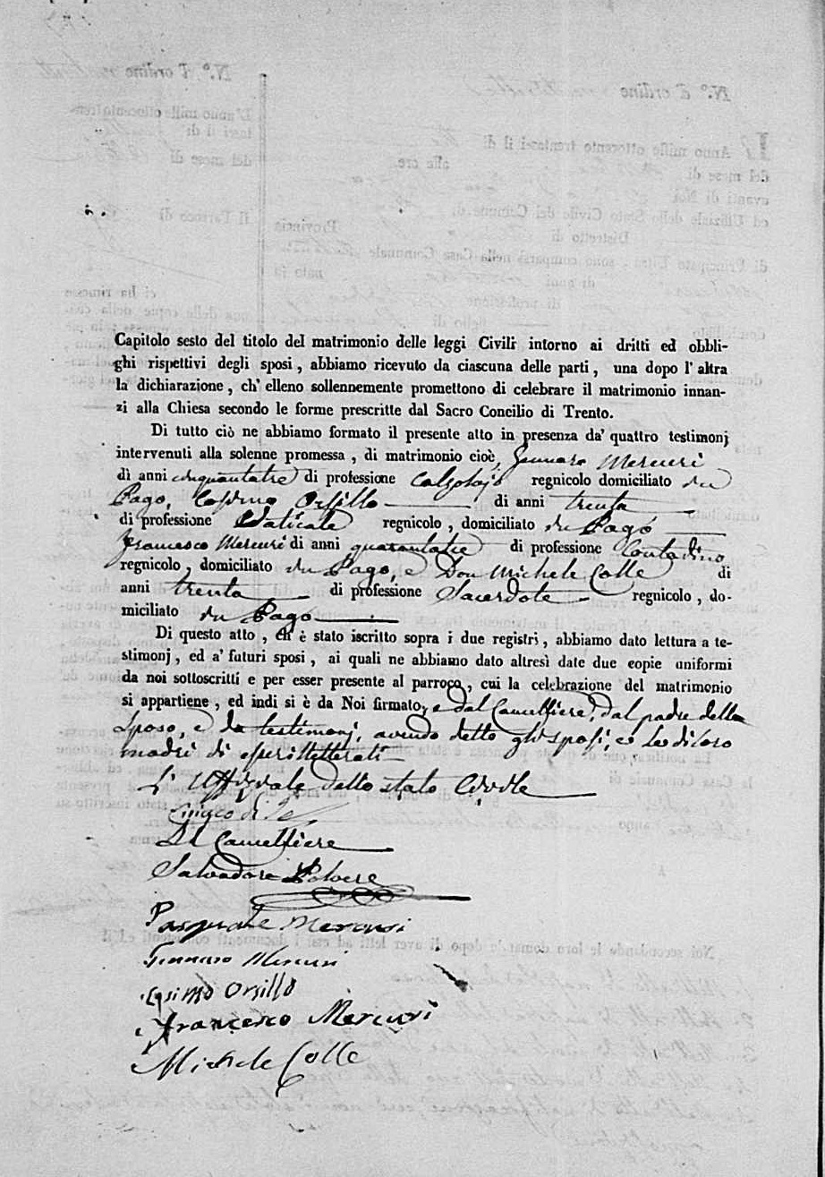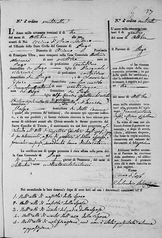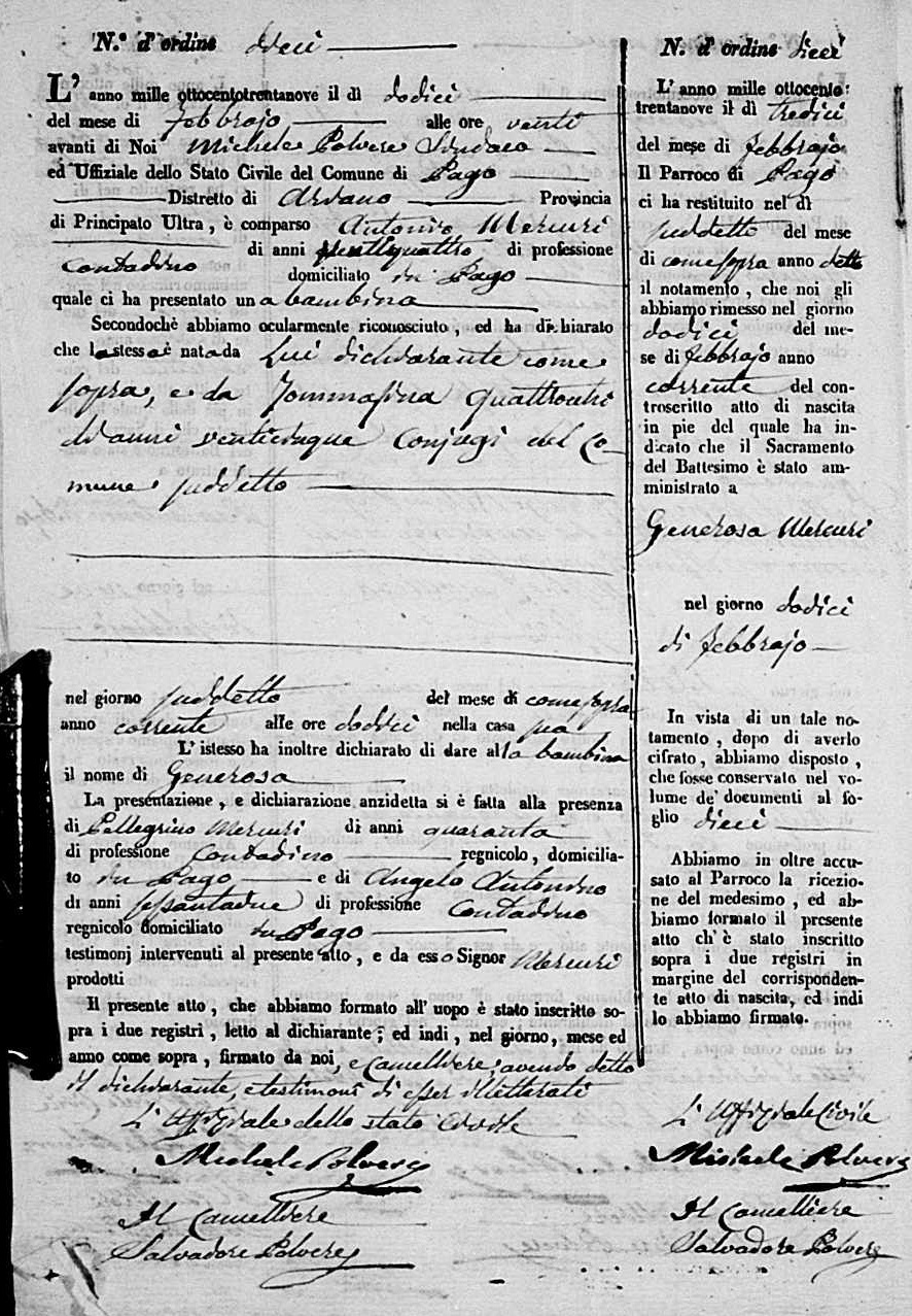 Antonio Mercuri were married on October 30, 1836 in Pago Veiano, Benevento, Campania, Italy. She and