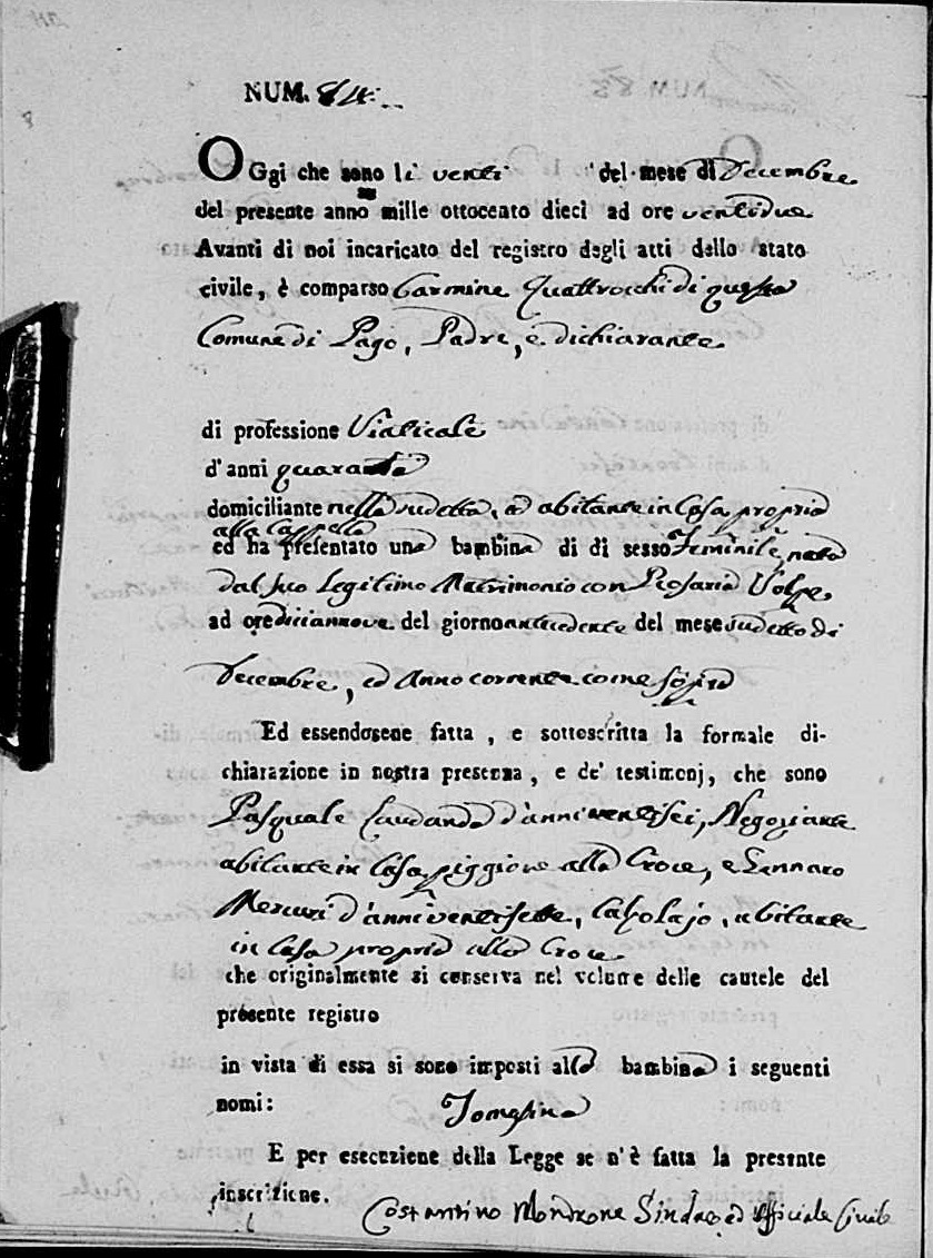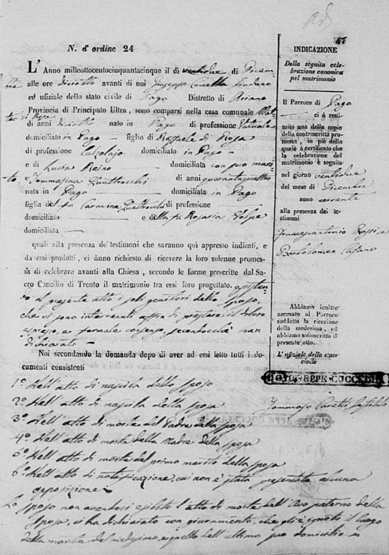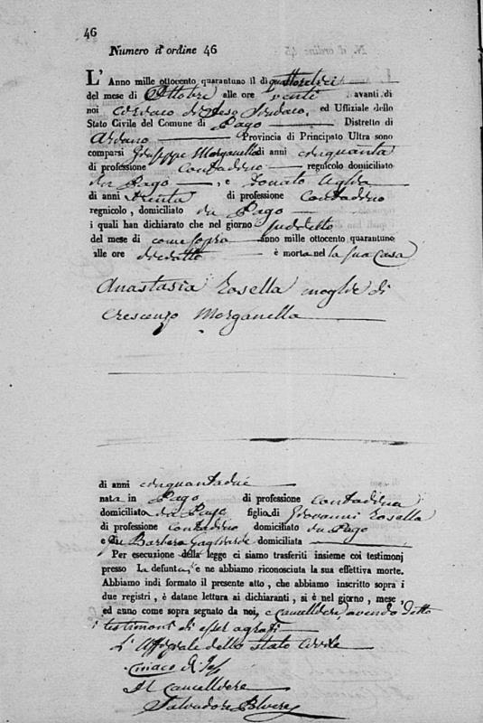 Anastasia Rosella were married on January 7, 1811 in Pago Veiano, Benevento, Campania, Italy. He died.