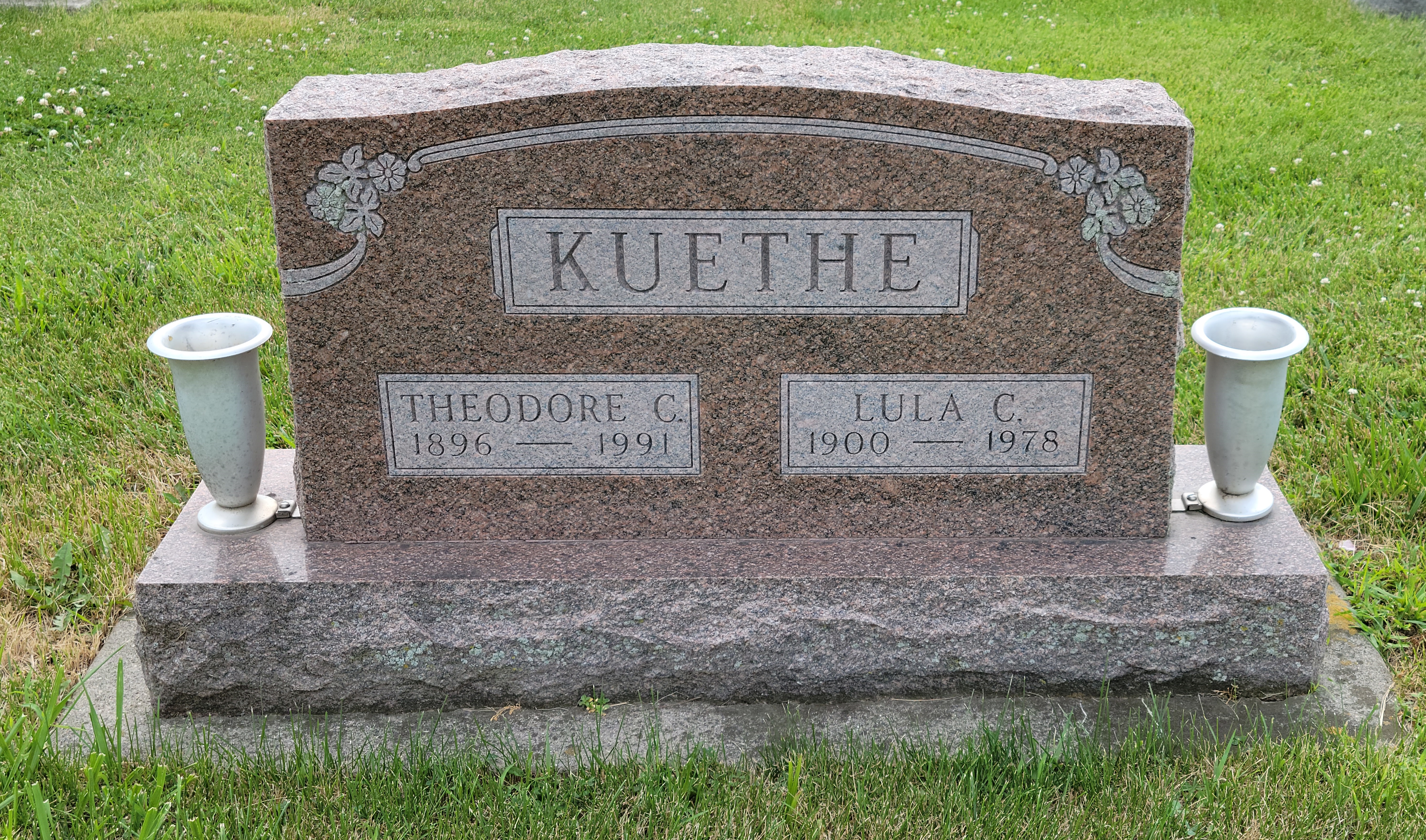 Theodore Kuethe were married. She died in 1978, at age ~77. She was buried in Prairietown Cemetery, Prairietown, Illinois.