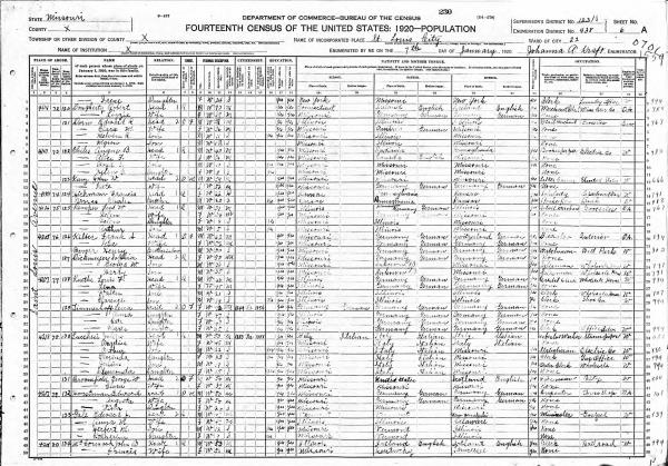 Braasch Family 1920 Federal Census Illinois, Line 38-42