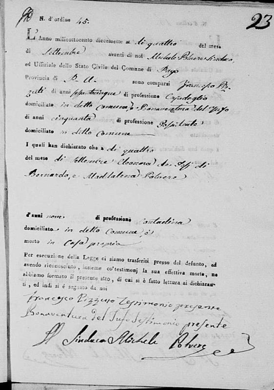Lucia Polvere were married. He died on February 23, 1815 in Pago Veiano, Benevento, Campania, Italy.