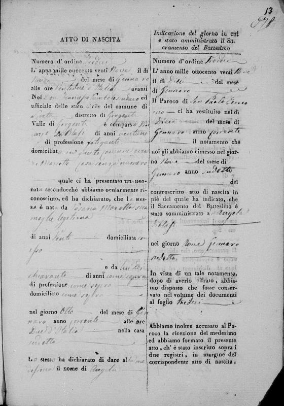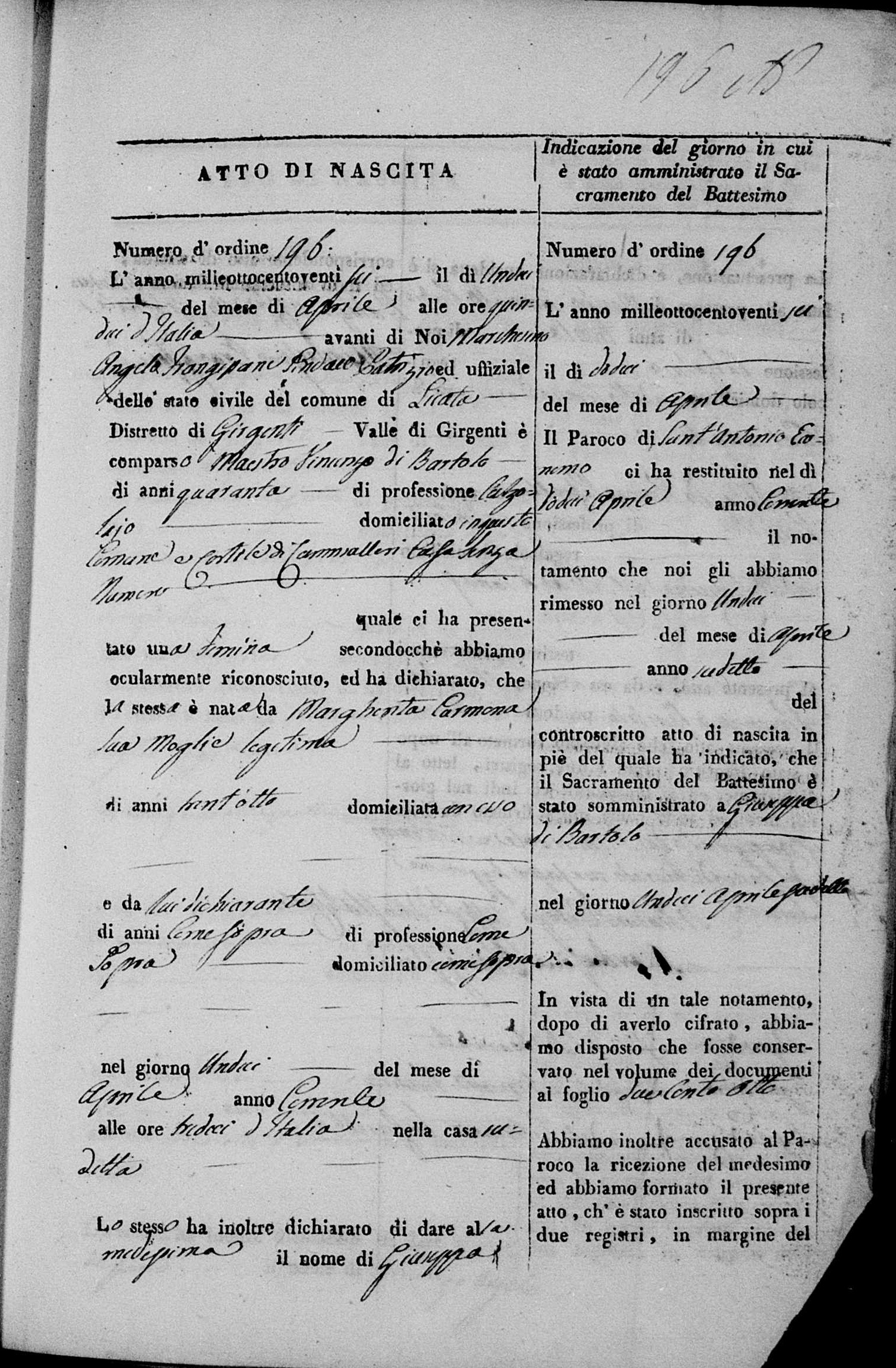 Rosaria Marotta were married on August 29, 1825 in Licata, Agrigento, Sicily, Italy. He died.
