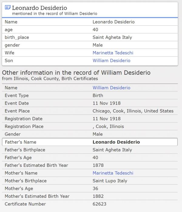 William Tom Desiderio was born on November 11, 1918 in Chicago, Cook, Illinois, USA. He died.