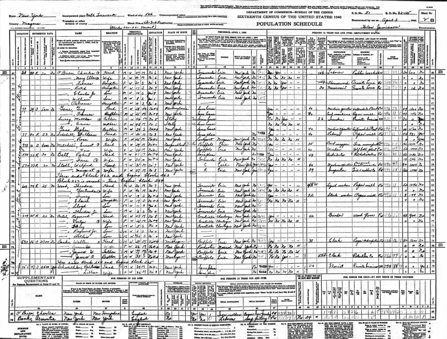 Valeri Family 1940 Federal Census New York, Lines 44-48
