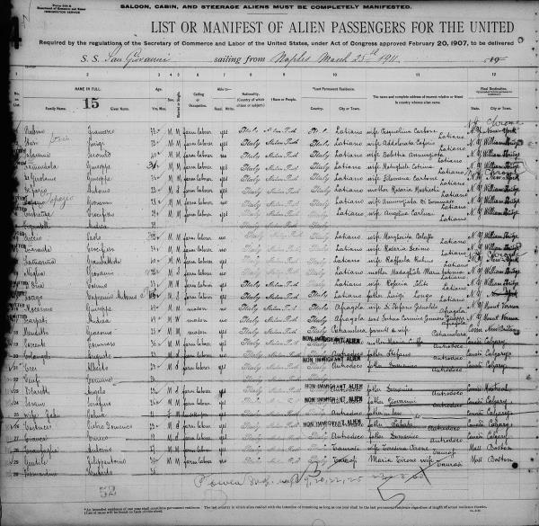 Scibelli Family 1914 Ship Departure Manifest, Lines 5-7