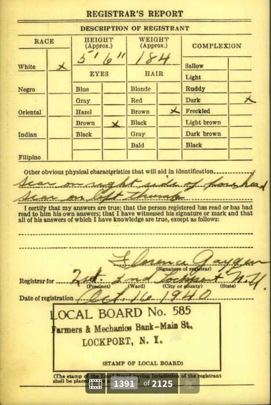 Luigi Carl "Bib" Valeri was born on June 21, 1911 in Lockport, Niagara, New York, USA. He died on January 18, 1964, at age 52, in Buffalo, Erie, New York, USA. He was buried in Saint Patrick's Cemetery, Lockport, New York.