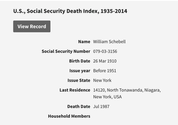 Salvatore "William" Scibelli (Schebell) was born on March 26, 1909 in Linwood, Genesee, New York, USA. He and