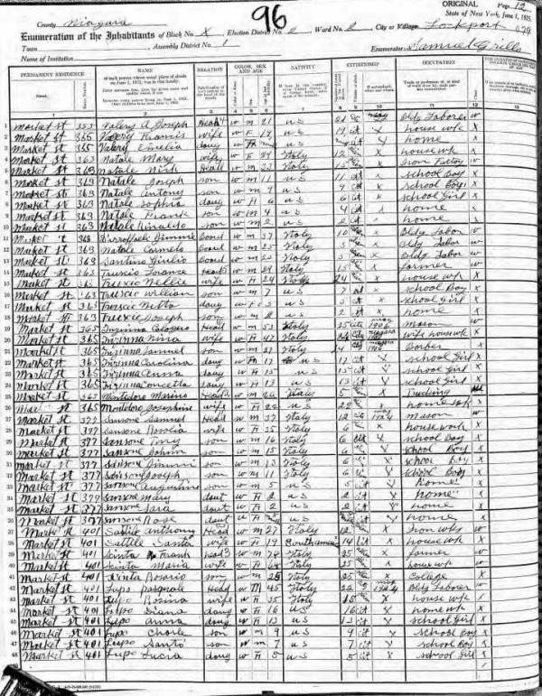 Valeri Family 1920 Federal Census New York, Lines 53-61