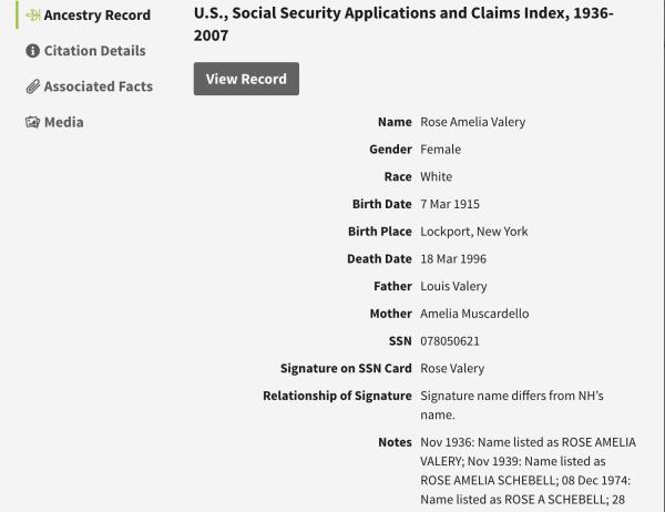 Rosa Amelia Valeri was born on March 8, 1915 in Lockport, Niagara, New York, USA. She and