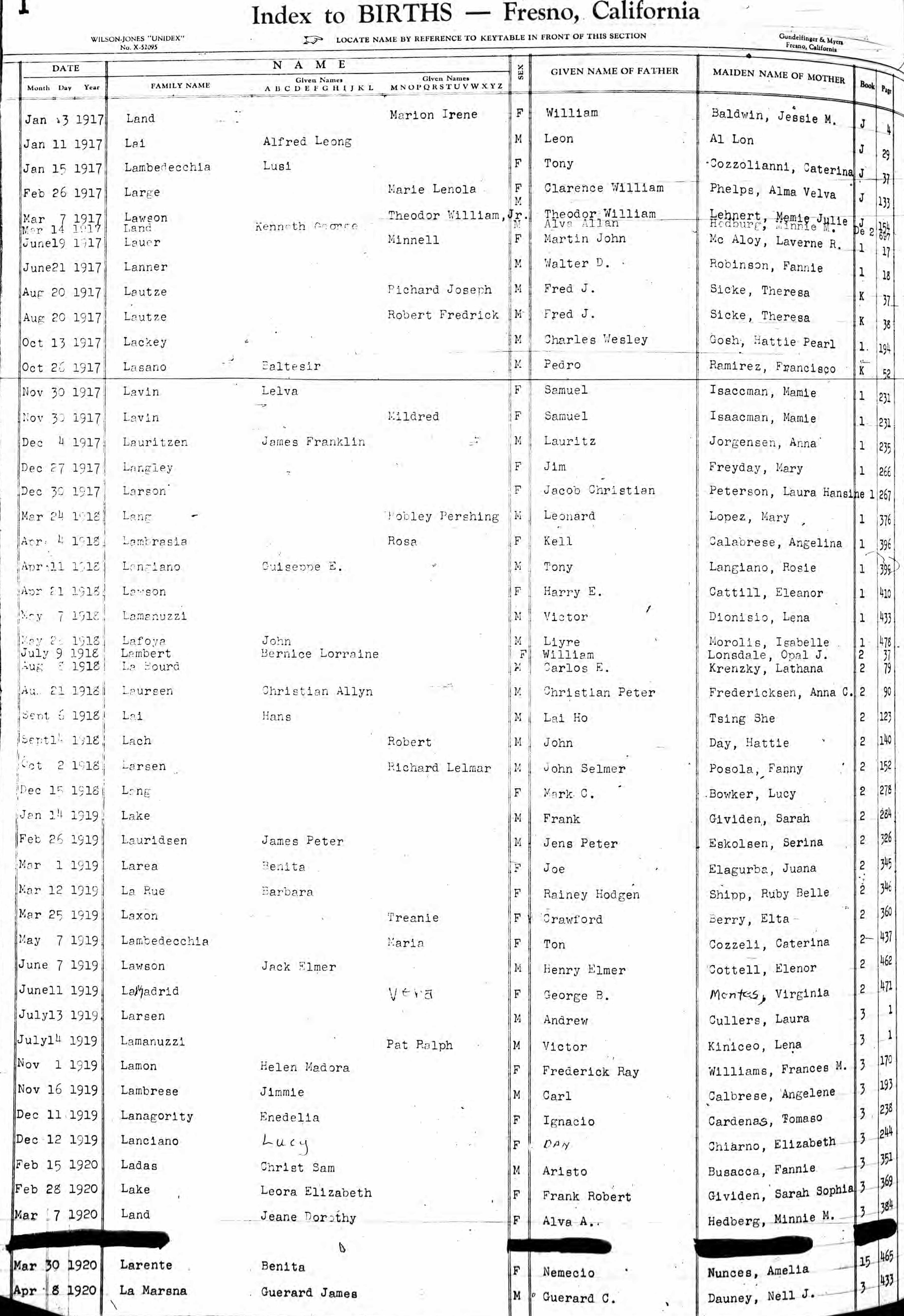 Louis Antonio James Lanciano was born on November 5, 1921 in Fresno, Fresno, California, USA. He and