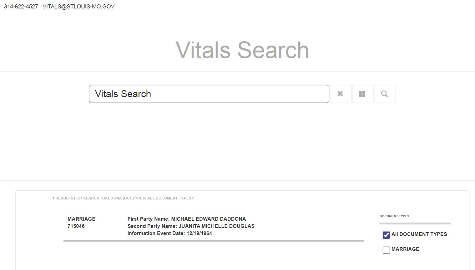 Juanita Michelle "Mary" Douglas were married on December 19, 1964. He died on September 22, 2002, at age 83, in St. Louis, Missouri, USA. He was buried in Shepherd Hills Cemetery, Barnhart, Missouri.