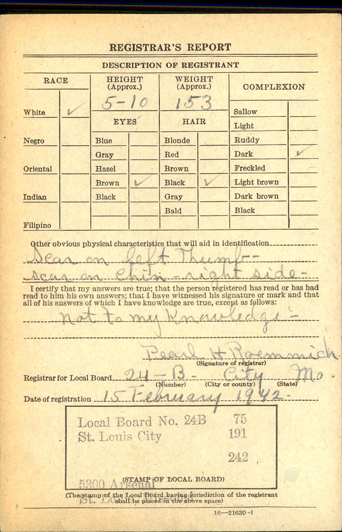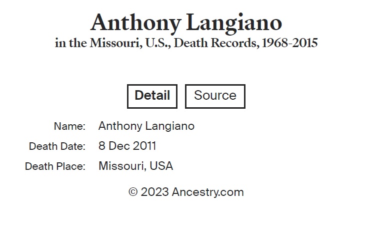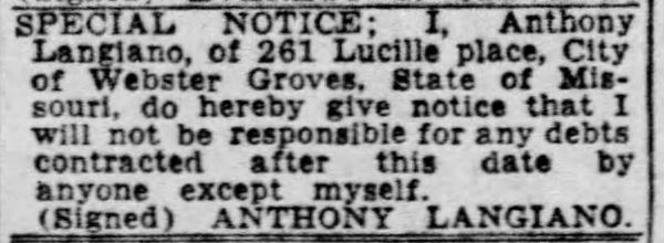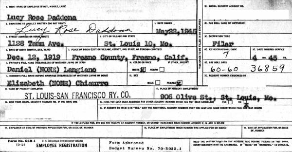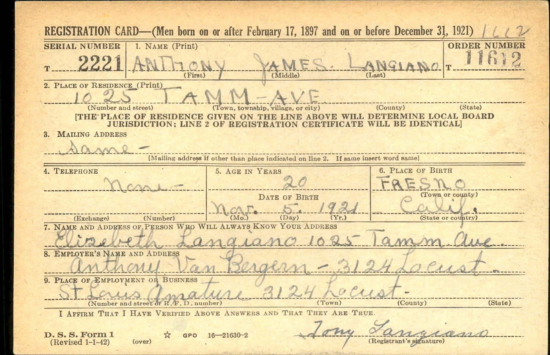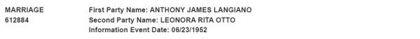 Lucy Rose Langiano were married in 1940 in St. Louis, Missouri, USA. He and