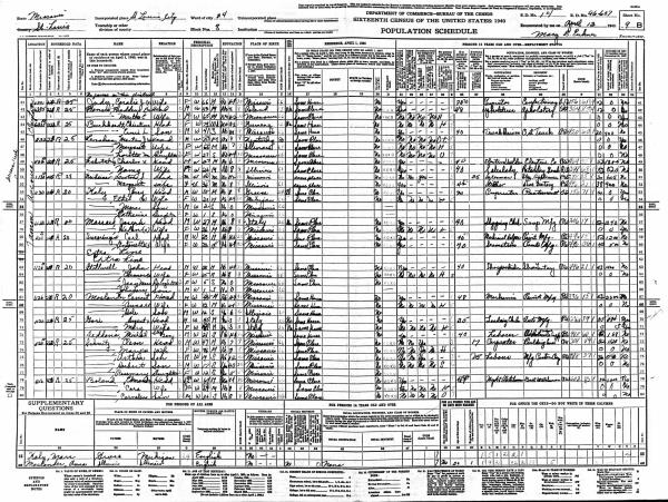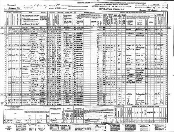 Gori Family 1940 Federal Census Missouri, Lines 70-72