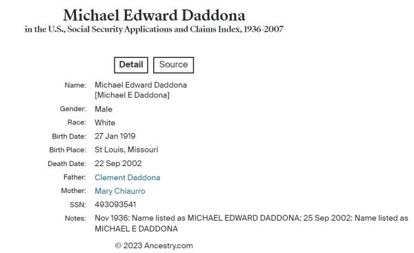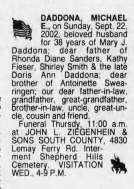 Michael Edward D'Addona was born on January 27, 1919 in St. Louis, Missouri, USA. He and
