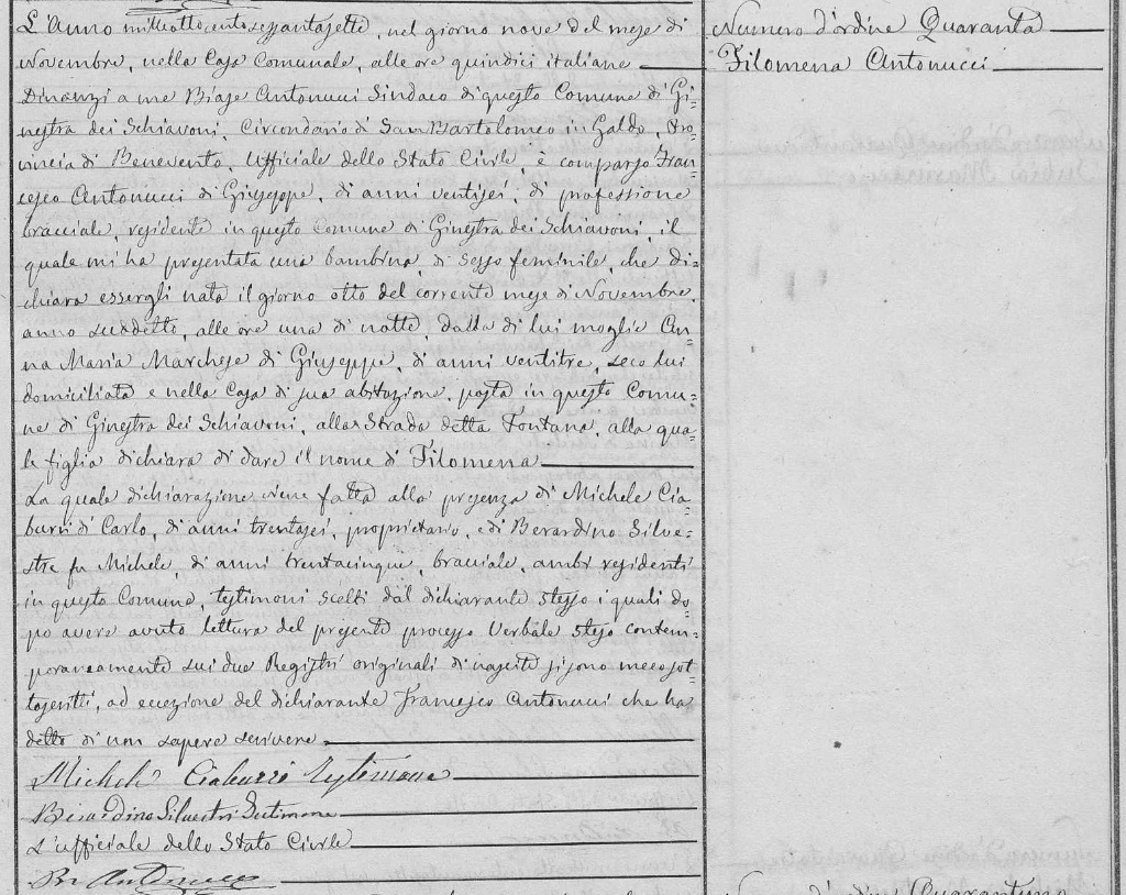 Filomena Antonucci was born on November 8, 1867 in Ginestra degli Schiavoni, Benevento, Campania, Italy. She died.