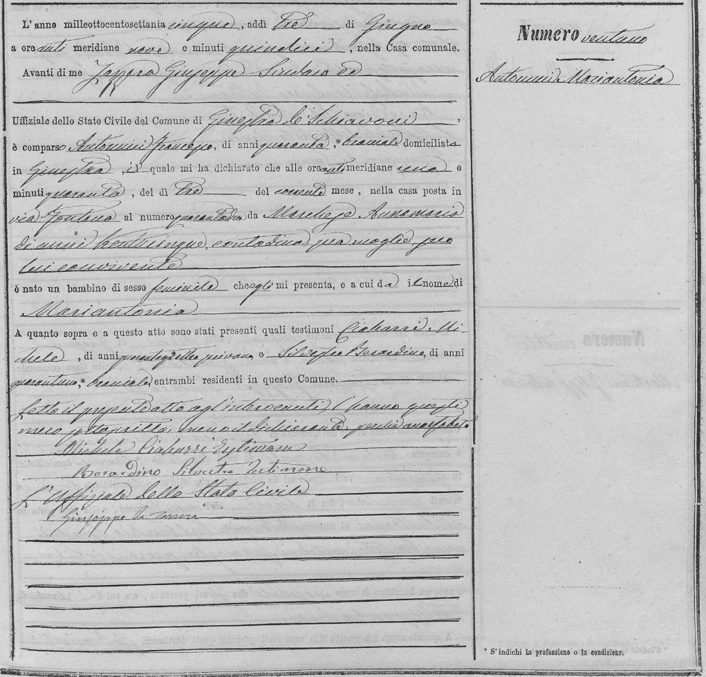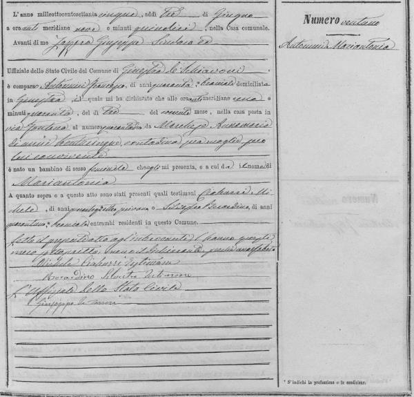 Maria Antonia Marino was born in Ginestra degli Schiavoni, Benevento, Campania, Italy. She died.