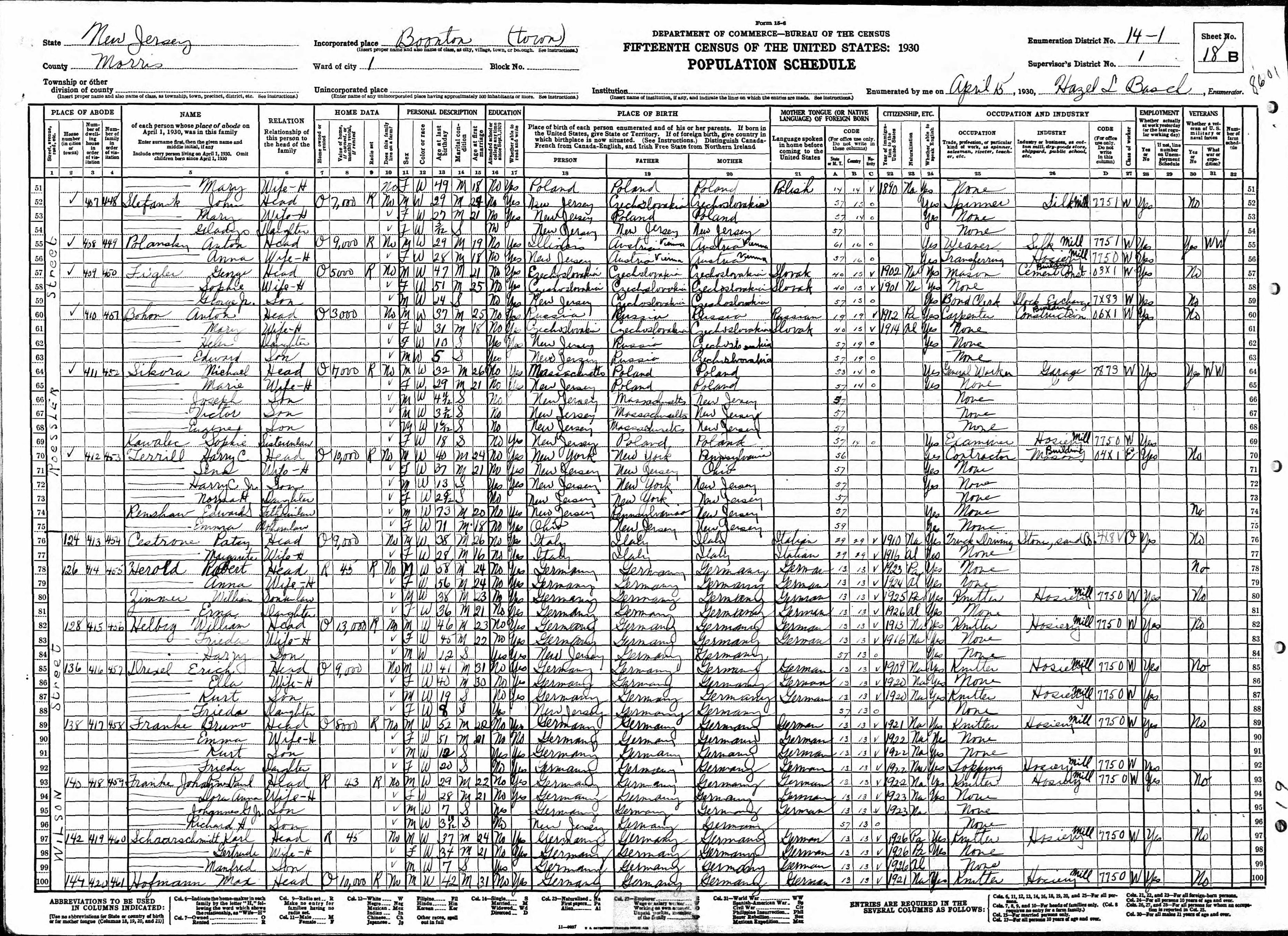 Cestrone Family 1930 Federal Census New Jersey, Lines 76-77