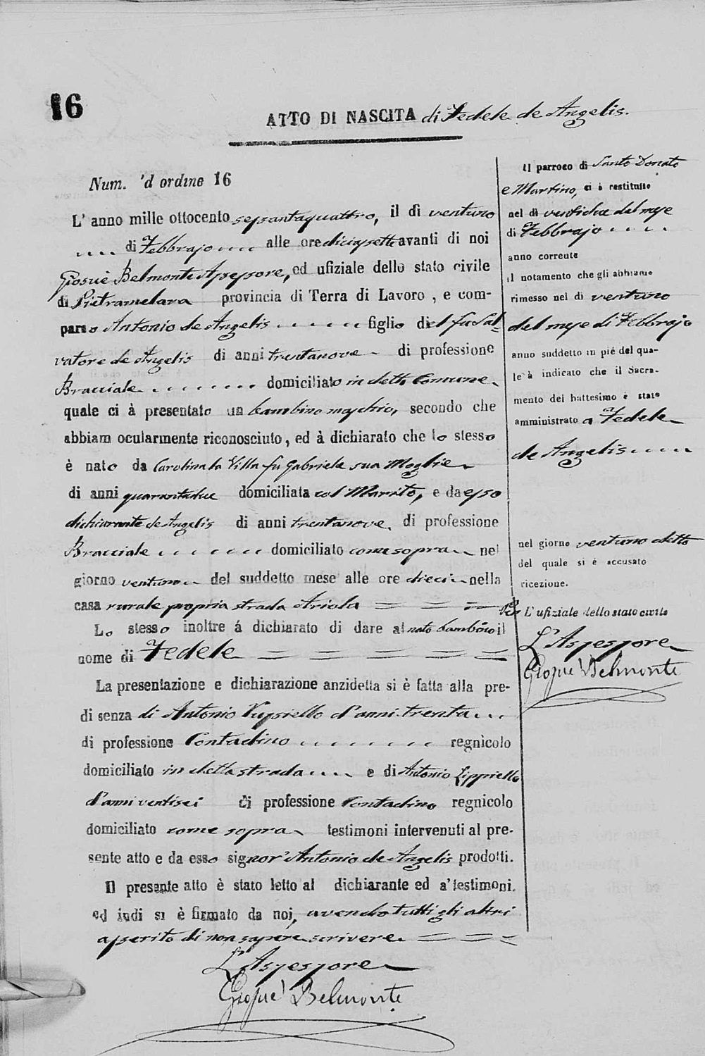 Fedele De Angelis was born on February 21, 1864 in Pietramelara, Caserta, Campania, Italy. He and