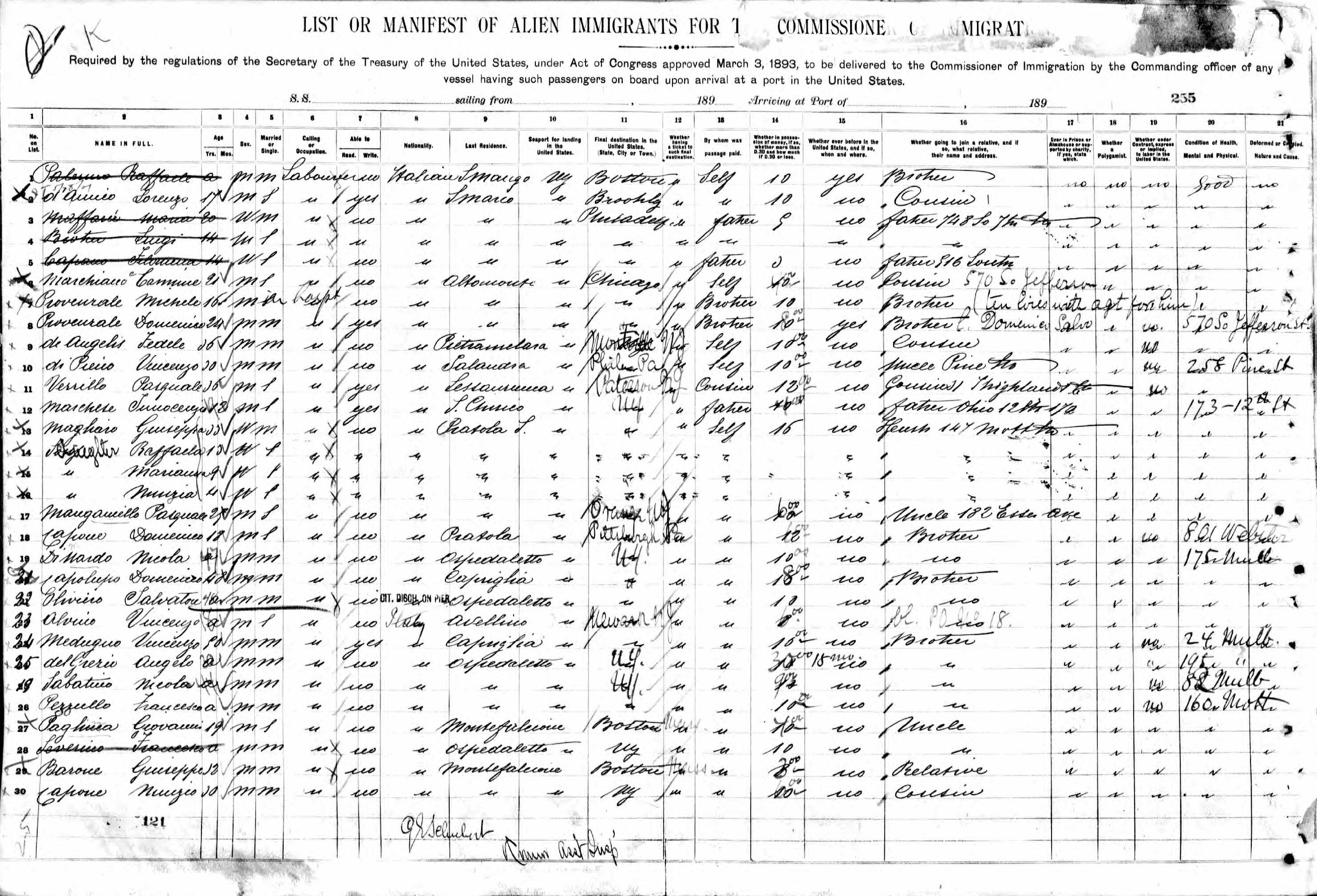 Fedele De Angelis 1901 Ship Departure Manifest, Line 9