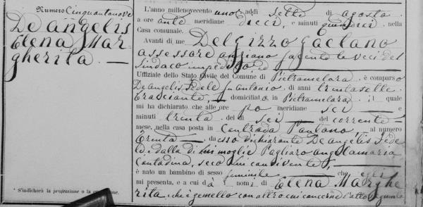 Angela Maria Pagliaro were married on November 2, 1893 in Pietramelara, Caserta, Campania, Italy. He died.